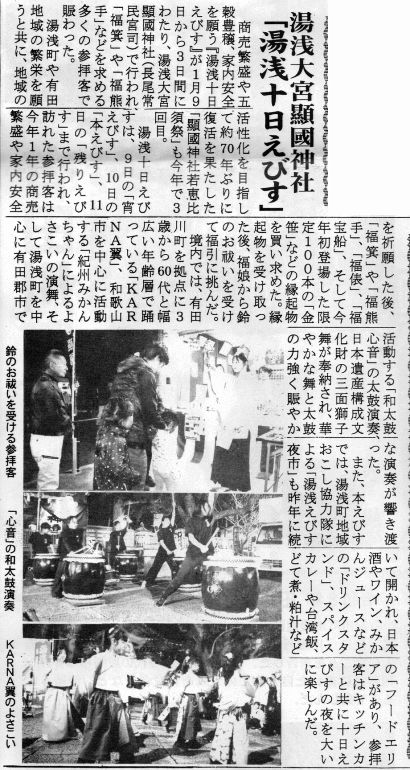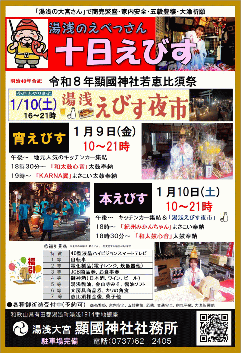和歌山県有田郡湯浅町大字湯浅字宮後1914鎮座 湯浅大宮 顯國神社 十日えびす(商売繁盛、家運隆昌) 1/9宵えびす、1/10本えびす